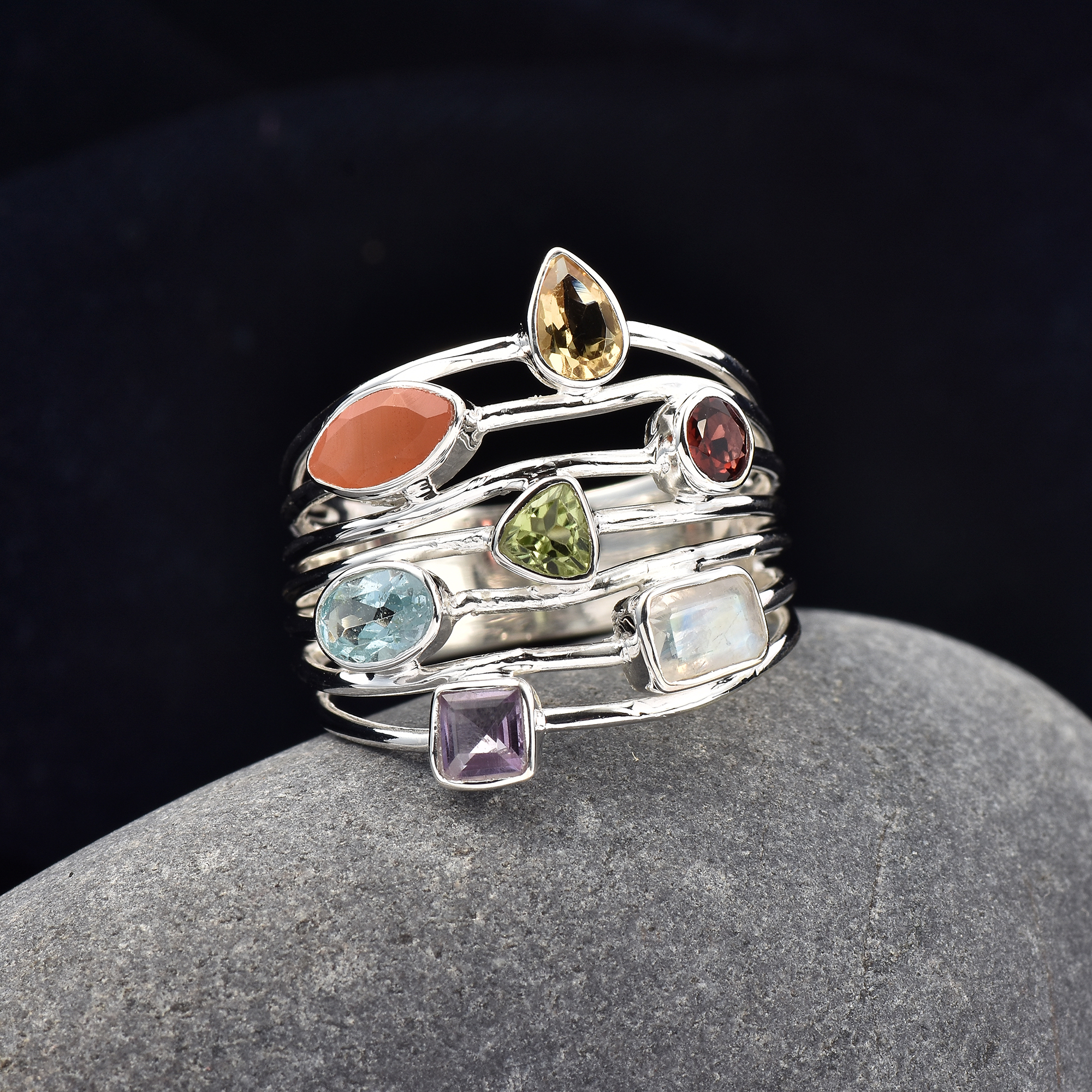 Multistone, Ring, Sterling silver 925