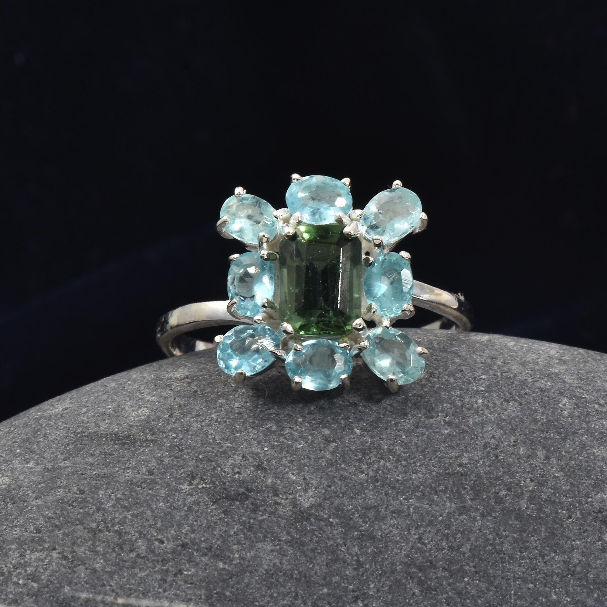 Rainbow-Aquamarine, Ring, Sterling silver 925