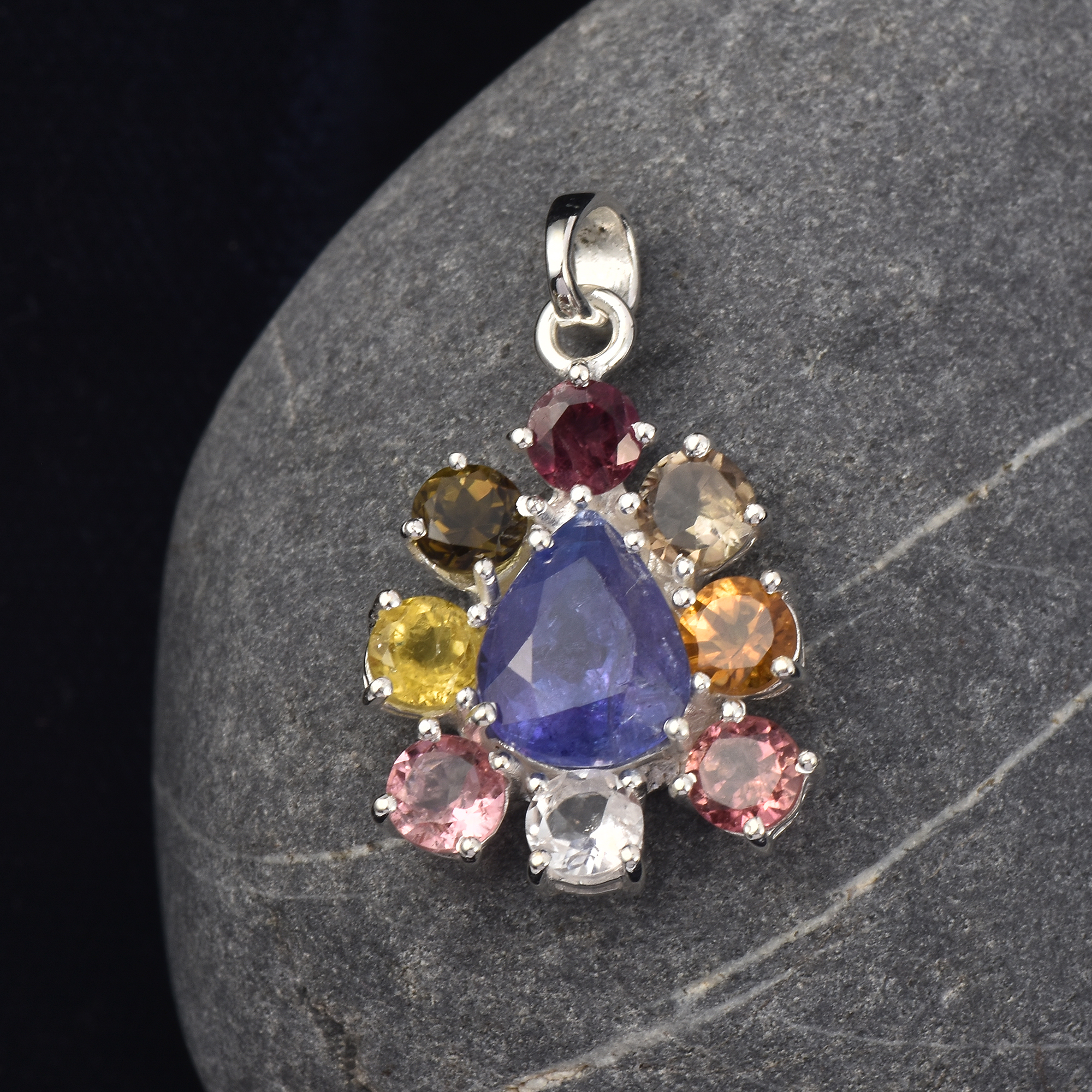 / Multistone Tourmaline-Tanzanite, Pendant, Sterling silver 925