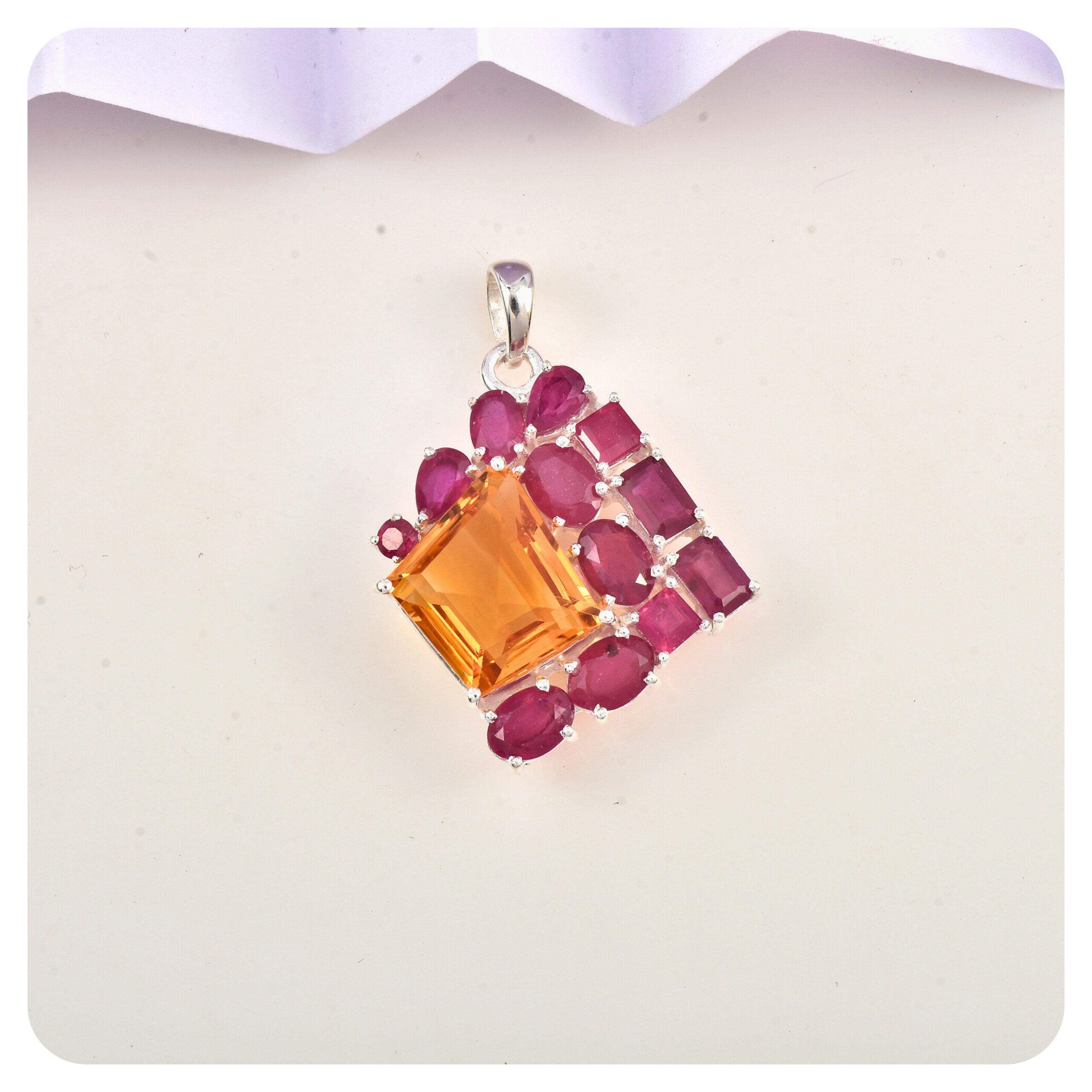 / Citrine-Ruby, Pendant, Sterling silver 925