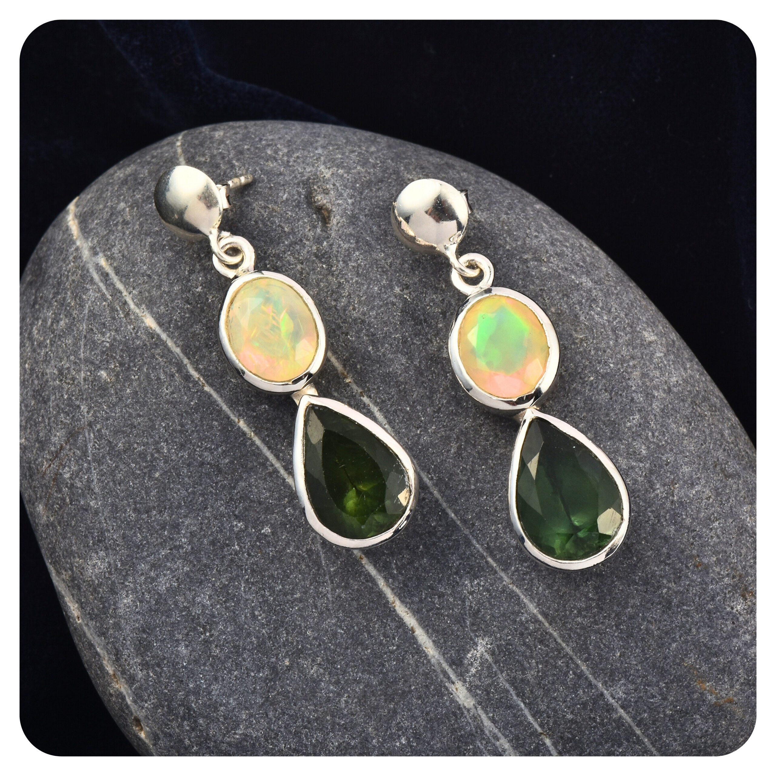 / Opal-Green Apatite, Earring, Sterling Silver 925
