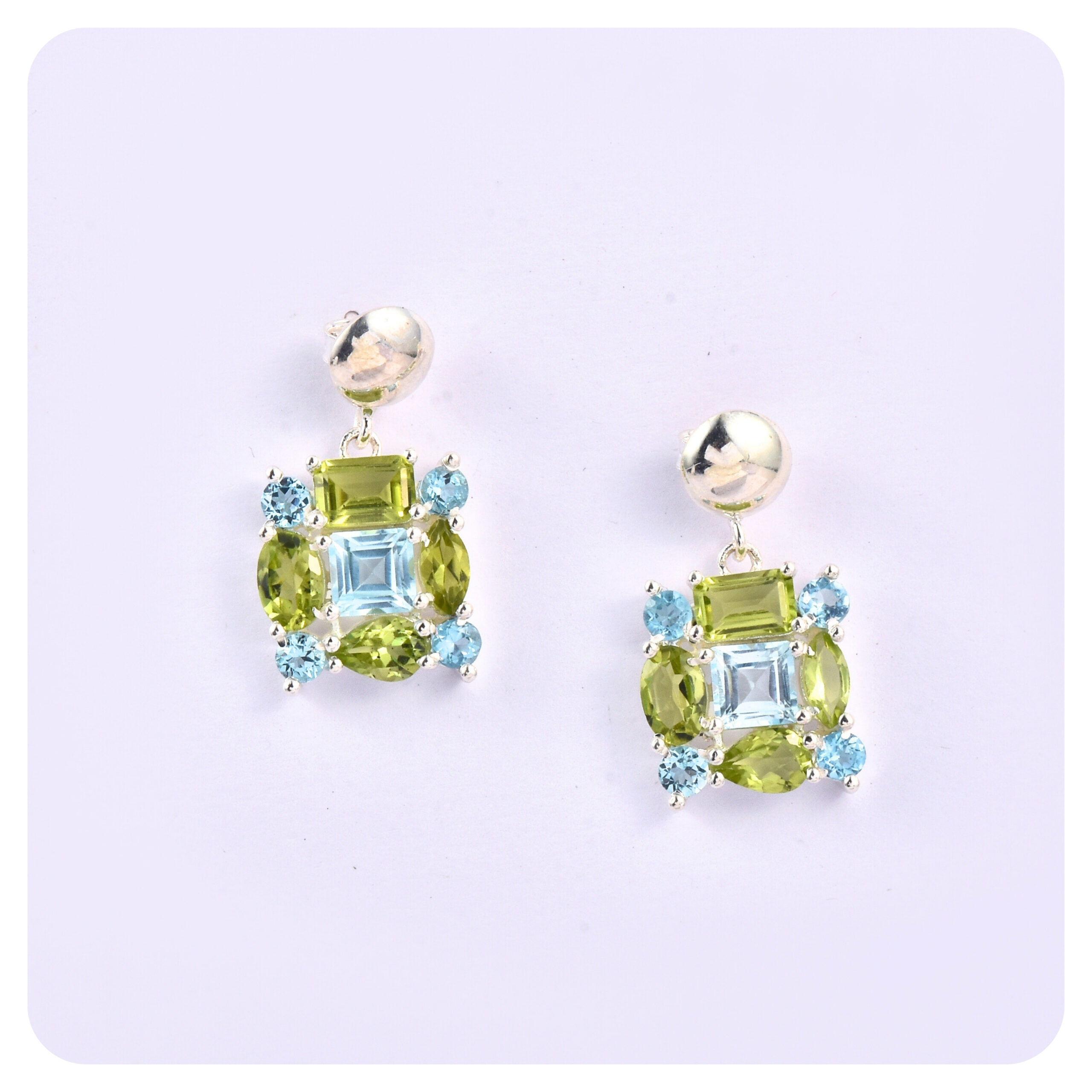 Peridot-Blue Topaz, Earring, Sterling Silver 925