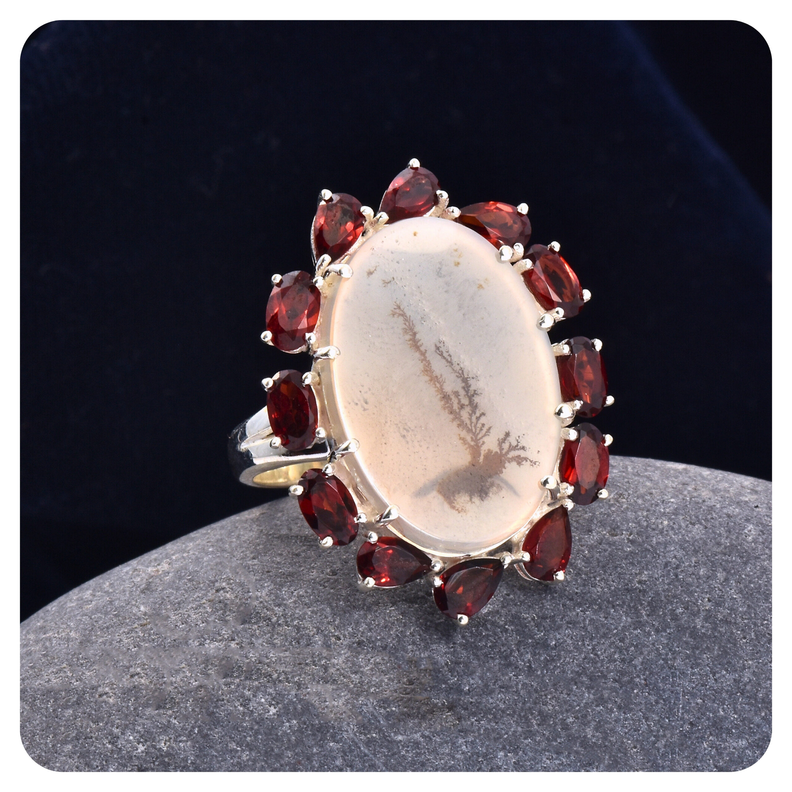 / Scenic Agate-Garnet, Ring, Sterling silver 925